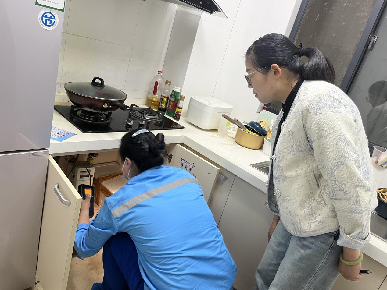 工作人員對(duì)燃?xì)庥脩糸_(kāi)展逐戶檢查,重點(diǎn)對(duì)天然氣接口軟管是否老化、燃?xì)馄骶呤欠癯谑褂谩⑹欠裼邢ɑ鸨Wo(hù)措施,燃?xì)忾y門(mén)是否正常使用等問(wèn)題進(jìn)行全面檢查。在檢查過(guò)程中,發(fā)現(xiàn)廚房操作間積堆物品、線路交叉重疊等現(xiàn)象,要求客戶立即整改。