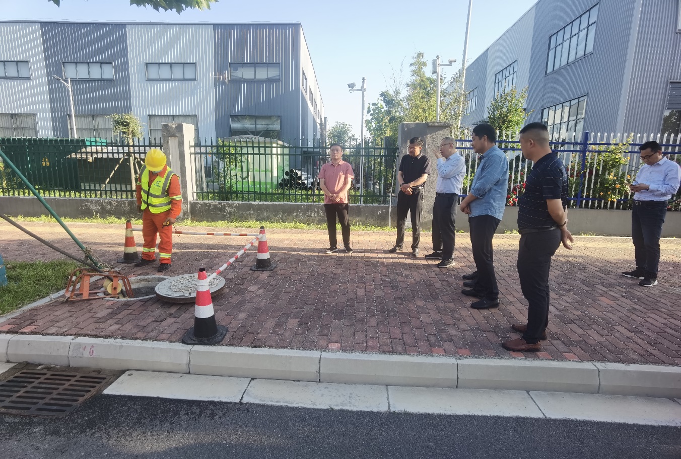 在鏡泊湖路疏通作業(yè)現(xiàn)場,檢查組認(rèn)真聽取了園區(qū)汛前排水防澇工作進(jìn)展情況匯報,并詳細(xì)詢問了園區(qū)汛前管道疏通、檢測及維修相關(guān)情況。