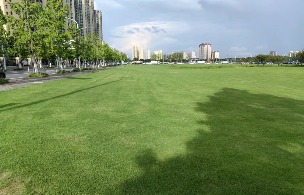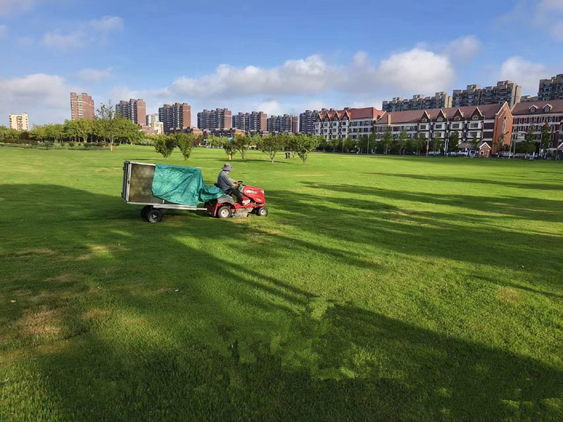 增加灌溉“保綠”,科學(xué)澆水潤綠地。采取定時、定責(zé)、定地塊的工作方法,用水泵抽灌的方式進(jìn)行澆水。澆水時間控制在上午9點之前和下午4點以后,最大限度減少水分蒸發(fā),及時供給草坪所需水分。