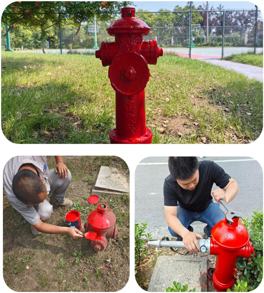 為及時(shí)高效完成消火栓翻新工作,工作人員迅速行動(dòng),選用材料,攜帶鐵刷、鋼絲球、扳手和油漆,小心拆開消防栓,細(xì)心清除銹跡,認(rèn)真打油上漆,給區(qū)域內(nèi)的消火栓進(jìn)行除銹打油穿“新衣”,確保消防設(shè)施正常有效使用。同時(shí),針對(duì)消防栓啟閉閥是否靈活、悶蓋內(nèi)膠圈是否完整、消防栓零部件是否有損壞缺失、水壓是否正常等情況,進(jìn)行了現(xiàn)場(chǎng)測(cè)試并做好登記和維修,以確保消火栓的安全完整。