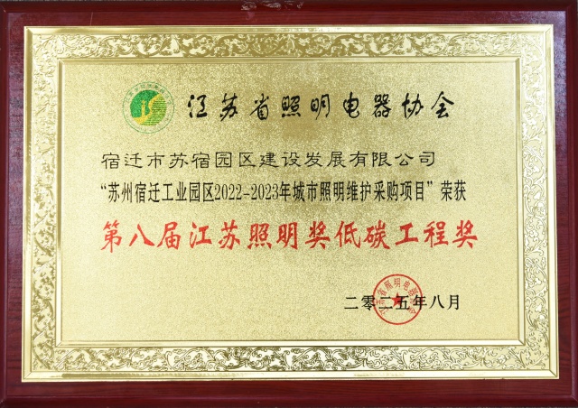 2025年8月28日,以“新質(zhì)引領(lǐng) 綠色轉(zhuǎn)型”為主題第八屆江蘇照明獎頒獎典禮在南京圓滿落幕,本次評選由江蘇省照明電器協(xié)會主辦。我司管理的“2022-2023年城市照明維護采購項目”榮獲本屆江蘇照明獎“低碳工程獎”。此次獲獎,是對公司始終堅持綠色低碳發(fā)展理念、將“低碳化、智能化”作為抓手的充分肯定。