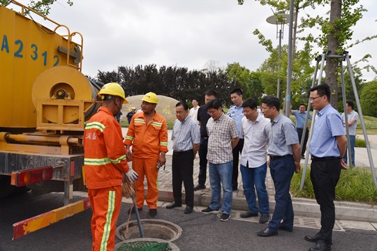 此次演練模擬園區(qū)連續(xù)普降暴雨,同里湖路部分道路出現(xiàn)嚴(yán)重積水,影響通行。接到險(xiǎn)情匯報(bào),園區(qū)立即啟動(dòng)防汛應(yīng)急預(yù)案,公司應(yīng)急搶險(xiǎn)組迅速趕到現(xiàn)場(chǎng),放置警示標(biāo)志提醒車輛行人繞道通行。隨后根據(jù)現(xiàn)場(chǎng)查勘迅速制定排水方案,首先使用防汛應(yīng)急泵車抽排路面積水,隨后對(duì)積水路段管道進(jìn)行緊急疏通,最后采用CCTV檢測(cè)技術(shù)查明堵塞原因并制定后續(xù)維護(hù)方案。整個(gè)演練過(guò)程人員分工明確,搶險(xiǎn)反應(yīng)迅速,環(huán)節(jié)銜接流暢。