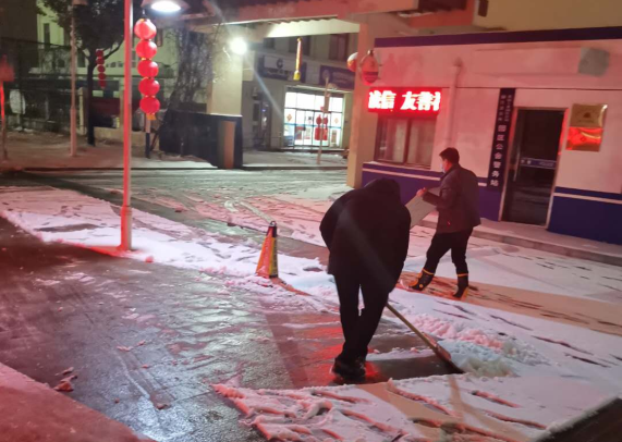 在園區(qū)公舍防疫值守的李佃左說道:“雖說疫情來了,但大家伙的心是牢牢團結(jié)在一起的,這不一看下雪了,擔心復工人員上班時的出行安危,大家伙都忙活起來啦!”當晚,建發(fā)公司員工、園區(qū)環(huán)衛(wèi)人員“相約”在轄區(qū)內(nèi)及園區(qū)道路街頭,在嚴寒中默默堅守,與冰雪爭分奪秒,你鏟我掃、撒布融雪劑,井然有序,從容不亂,大家齊心協(xié)力、配合默契,為保障轄區(qū)內(nèi)通暢竭盡全力。在掃雪除冰的同時,園區(qū)公舍集宿區(qū)工作人員仍然堅守在執(zhí)勤點執(zhí)勤防控,有序做好各項疫情防控工作。
