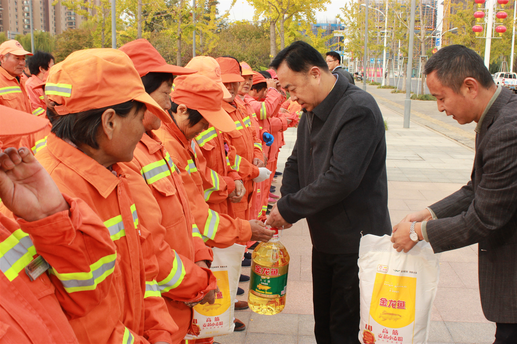 10月26日8時30分,園區(qū)黨工委委員、管委會副主任、規(guī)劃建設(shè)局局長邢全男帶隊,親切慰問了環(huán)衛(wèi)工人,并向她們送上了節(jié)日的慰問,感謝她們?yōu)閳@區(qū)環(huán)境衛(wèi)生作出了貢獻(xiàn),并向她們發(fā)放了慰問品。