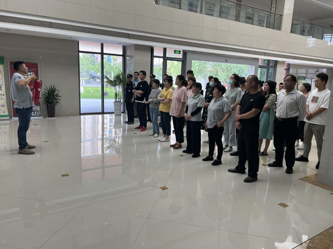 演練開(kāi)始前,生產(chǎn)力中心企業(yè)代表、保安、保潔人員集中學(xué)習(xí)了火災(zāi)預(yù)防、火場(chǎng)疏散逃生的基本常識(shí)以及如何撲救初起火災(zāi)。