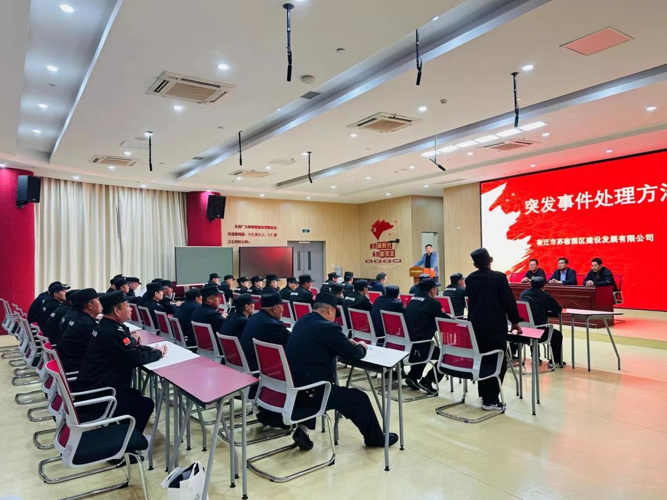 為進一步加強項目應急能力建設,提高救援應急處置能力,4月18日下午,建發(fā)公司在蘇宿外國語學校召開突發(fā)事件應急知識講座,園區(qū)公舍、蘇宿工業(yè)坊、蘇宿外南北校區(qū)、夢家園、生產(chǎn)力中心等項目安保人員參加了培訓。